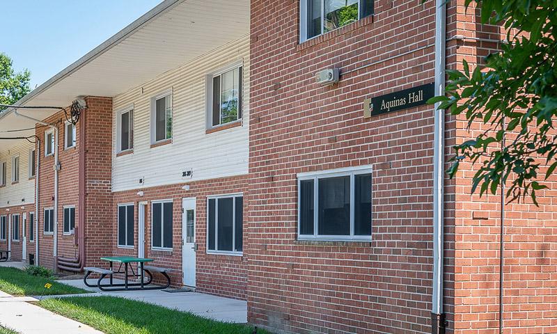 - Each room in Aquinas is furnished with: beds, desks with chairs, dressers, and closet space. Each kitchen is furnished with an electric stove, refrigerator, sink, and cabinets. All apartments have dining table with chairs and soft seated furniture for resident comfort. All apartments are fully carpeted and have air conditioning.
