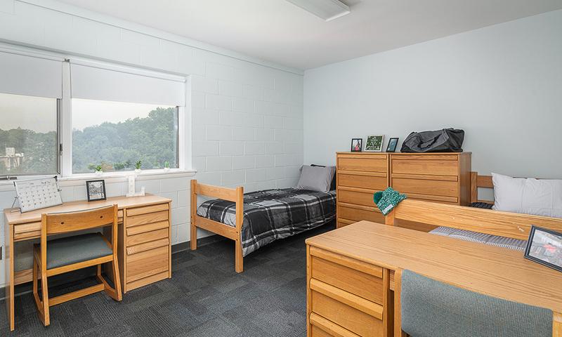 - Six resident apartments containing three bedrooms, a common room, two bathrooms, kitchen, and dining room.